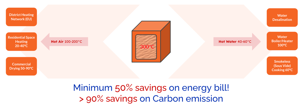 It can be used for many many applications, at the very basic, anything that requires heat, long duration of heat, can be adapt to leverage clean heat from a Sand Battery source.