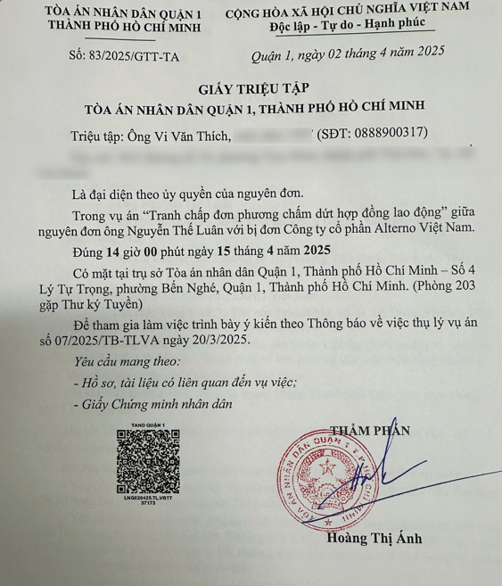 A court date was set, and both parties were summoned for April 15th, 2025. My legal team and I were present, prepared to present our case. However, Alternō Vietnam failed to appear.